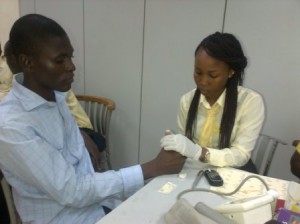 Union Bank Staffer getting a blood sugar test