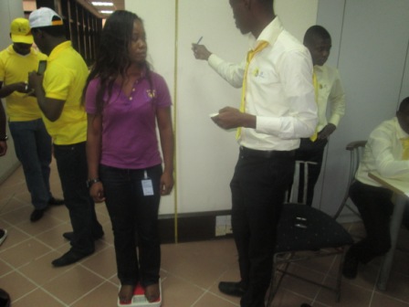 Union Bank Staff checking her BMI