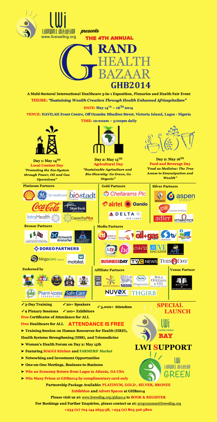 The theme for GHB2014 is “Sustaining Wealth Creation Through Health-Enhanced Africpaitalism”